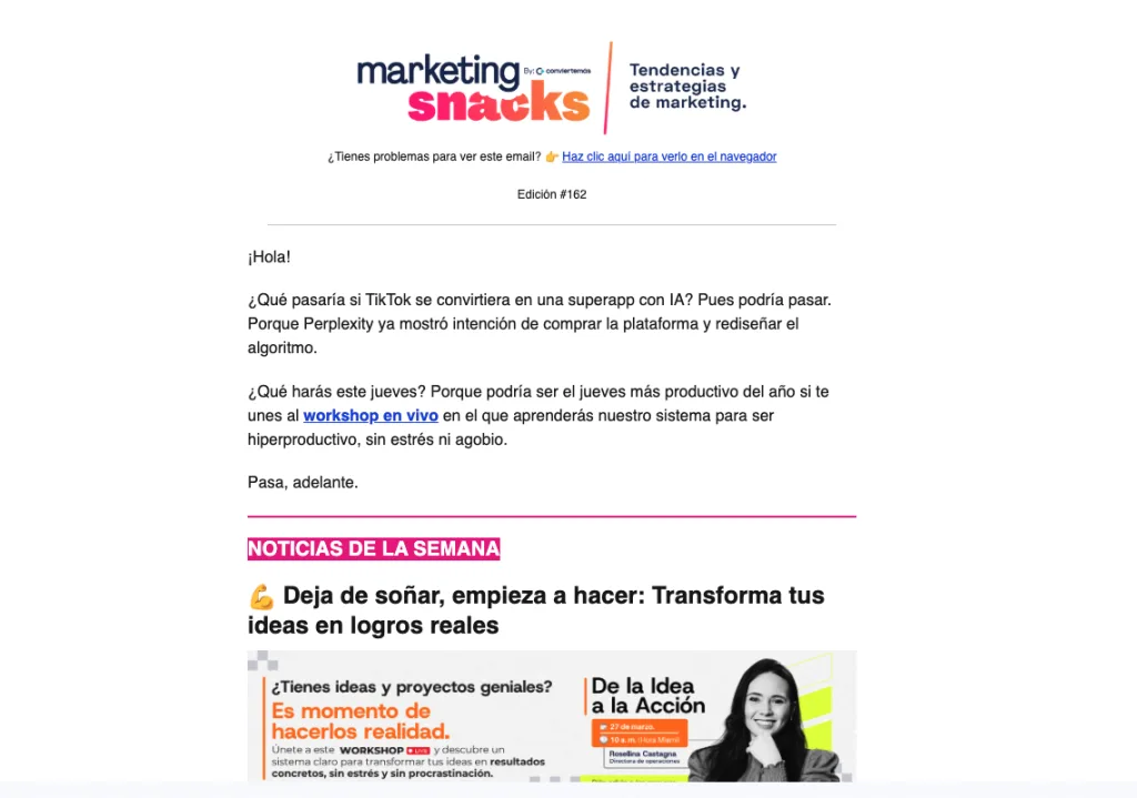 - Resumen semanal de noticias para marcas y creadores de contenido.