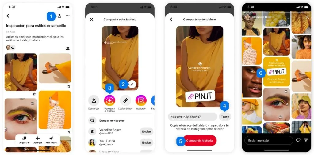“Board Sharing” es una función de Pinterest que te permite compartir tus tableros en las stories de Instagram, o bien, descargarlo en tu móvil para que lo compartas donde quieras.