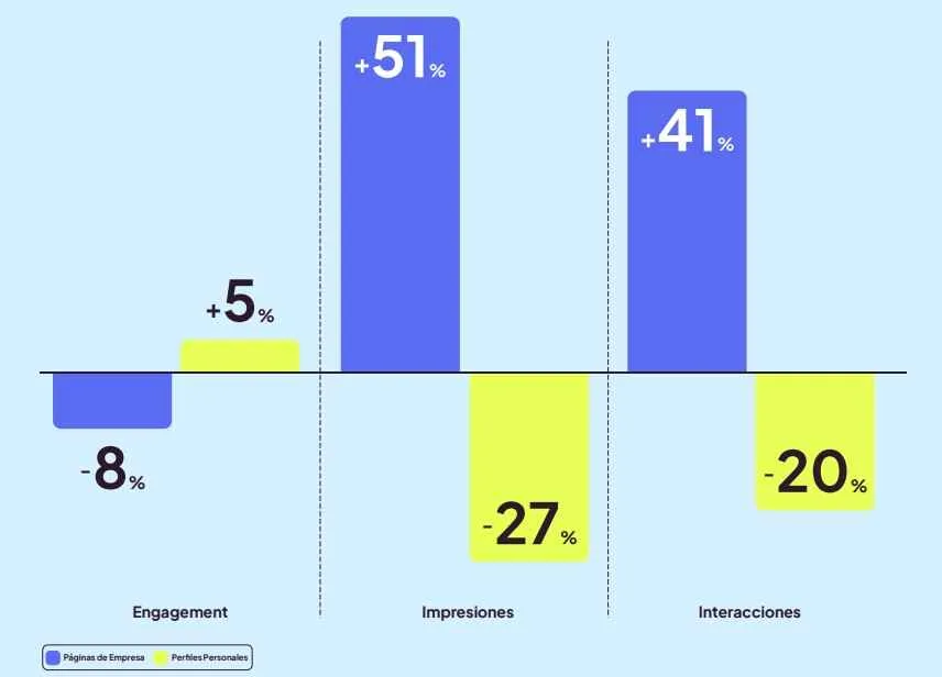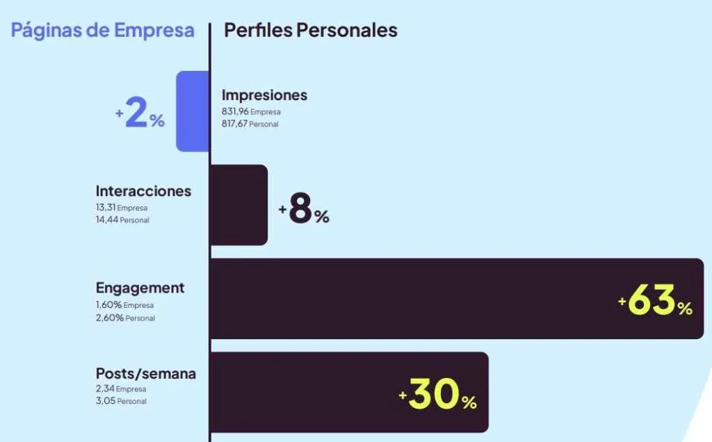 - Los perfiles personales generan más interacción y engagement que las páginas de empresa.