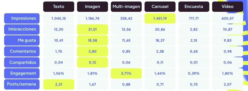 ¿Qué implica esto en la práctica? Que si tu estrategia en LinkedIn se basa casi siempre en imágenes únicas o vídeos cortos, puede que estés apostando por los formatos más cómodos o más habituales, pero no por los que mejores resultados te pueden dar.