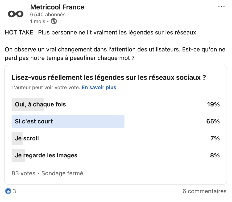 L’utilisateur ne lit pas, il scanne. Il décide en une fraction de seconde si votre post mérite un “voir plus” ou un simple balayage du pouce.