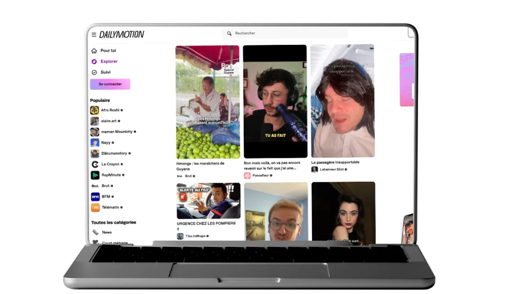 Dès votre arrivée sur le site, Dailymotion vous propose une sélection de vidéos et chaînes populaires, parfaites pour repérer ce qui buzze en ce moment.