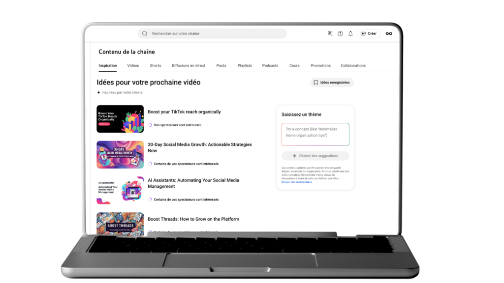 - La génération d’idées : elle s’inspire de vos performances et de votre audience pour vous souffler de nouveaux concepts.