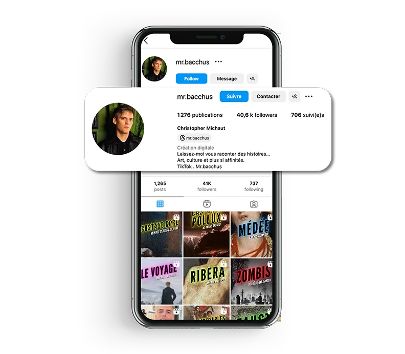 Mr. Bacchus joue avec les mots pour tisser un lien immédiat avec ses abonnés. Sa bio, qui commence par une promesse (« Laissez-moi vous raconter des histoires »), incite à la découverte. L’ajout de « Art, culture et plus si affinités » lui permet une ouverture infinie, comme un tableau où l’on peut projeter sa propre interprétation.