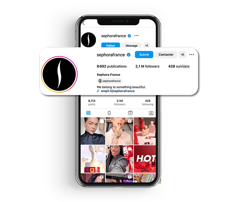 Sephora opte pour une bio poétique en anglais qui évoque l’inclusivité. Cette phrase poétique et positive résonne non seulement avec ses valeurs de diversité, mais aussi avec l’idée que la beauté n’a pas de frontières.