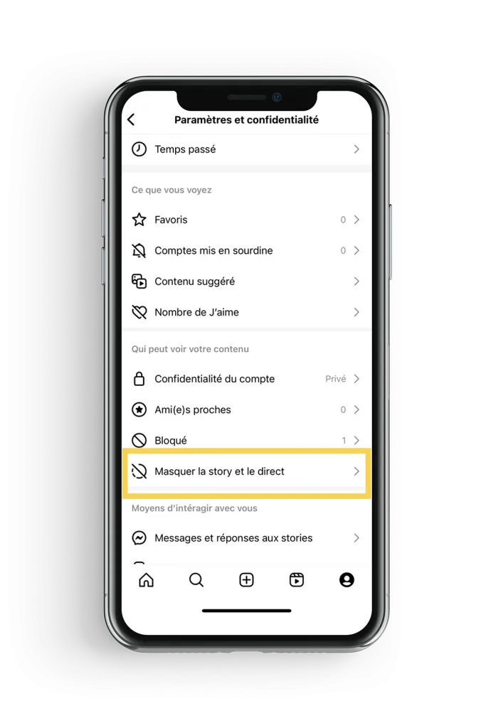 A l’inverse, il peut arriver que ce soit vous qui désirez cacher vos stories, à votre manager par exemple. Voici les étapes à suivre :