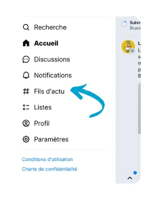 - Rendez-vous dans la section “Fil d’actu” de l’application (vous la verrez dans le coin supérieur droit marquée d’un # ou dans le menu à gauche.