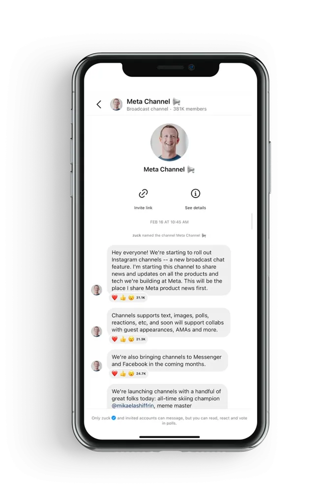 Dès que vous créez le canal de diffusion Instagram ou ajoutez un nouveau message, vos abonnés reçoivent une notification pour le rejoindre.
