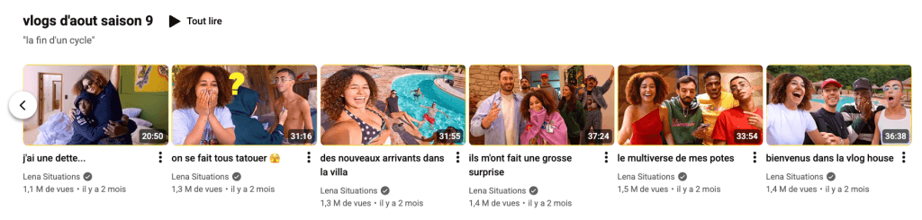 Prenez Léna Situations, par exemple, avec ses célèbres “Vlogs d’août” : une vidéo par jour, un format récurrent, une période attendue par la communauté entière.