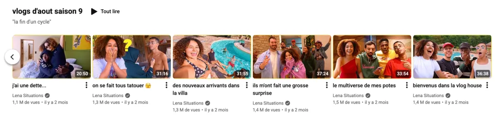 Prenez Léna Situations, par exemple, avec ses célèbres “Vlogs d’août” : une vidéo par jour, un format récurrent, une période attendue par la communauté entière.