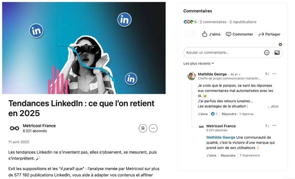 C’est aussi un excellent moyen de gagner en visibilité sur LinkedIn, car ces sujets suscitent naturellement des échanges, des débats, et du partage. Bref, vous ne suivez pas la tendance : vous l’expliquez.