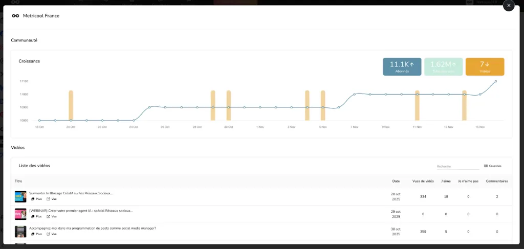 ▶️ Analysez les statistiques de chaque vidéo publiée.