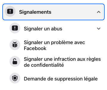 Cependant en cas de situation urgente, il est toutefois possible de faire des signalements spécifiques via les formulaires dédiés du Centre d’aide afin d’alerter Facebook et d’accélérer la prise en charge du problème.