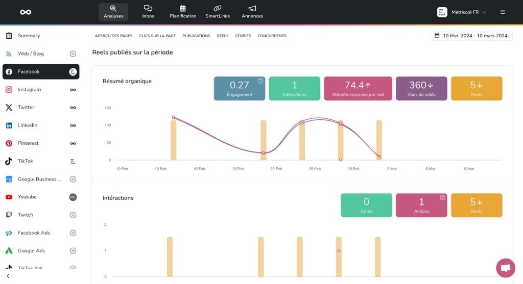 - Associez votre compte Facebook à Metricool.