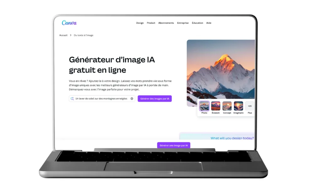 ➕ Le petit truc en plus : Canva ne propose pas un, mais deux outils IA ! Créer une image pour générer des visuels inspirés d’un visuel de référence. Média magique™ : pour explorer des styles variés et réalistes.
