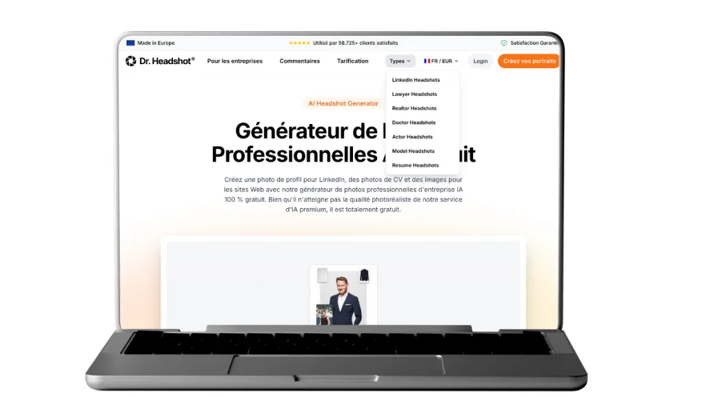Vous avez besoin d’une photo pro vite fait, bien fait ? Dr. Headshot est là pour ça. Pas de réglages compliqués ni d’attente interminable.