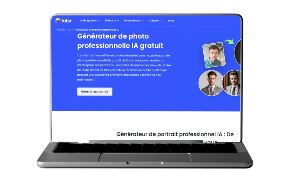 Avec Fotor, ce problème est réglé. Cet outil transforme votre photo du quotidien en un portrait professionnel, lumineux et crédible.