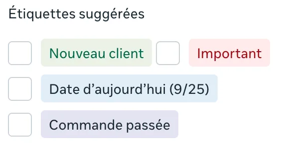 - Cliquez sur Étiquettes ou Tags dans le menu de la conversation.