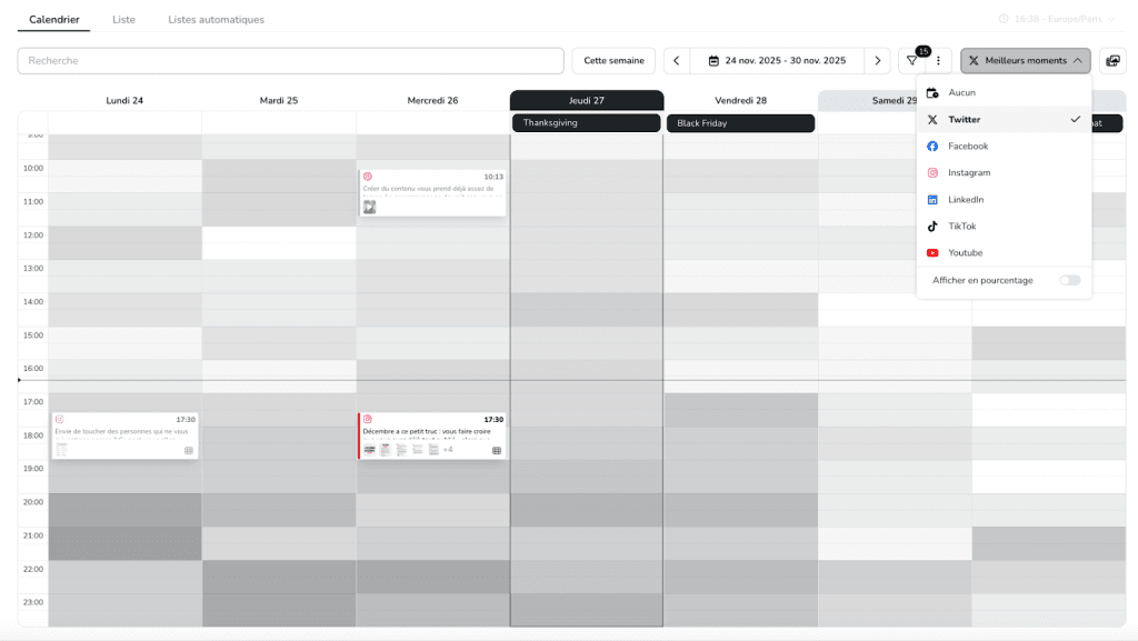 - Programmation : planifiez vos publications par lot pour conserver une cohérence éditoriale sur chacun de vos comptes.