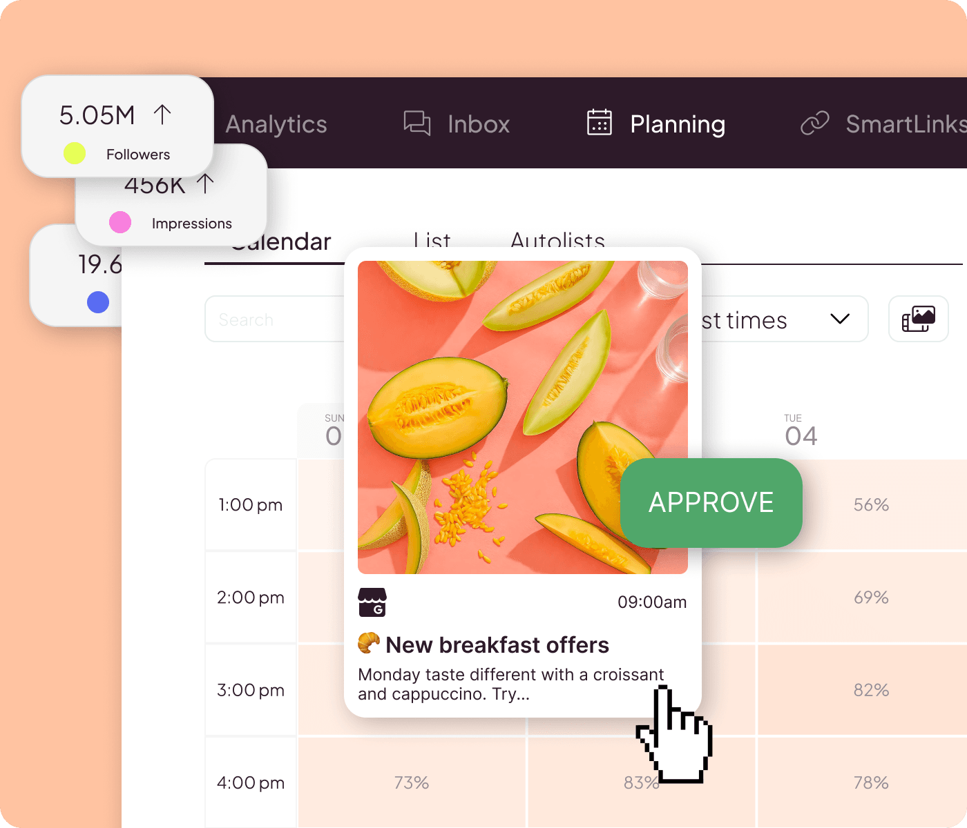 Avec Metricool, regroupez votre fiche d’établissement Google, vos réseaux sociaux et vos conversations avec vos abonnés dans un seul tableau de bord. Moins de temps à gérer vos onglets, plus de temps pour servir vos clients.