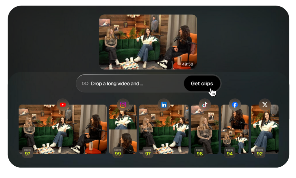- Découper un live ou un podcast en plusieurs clips prêts à publier