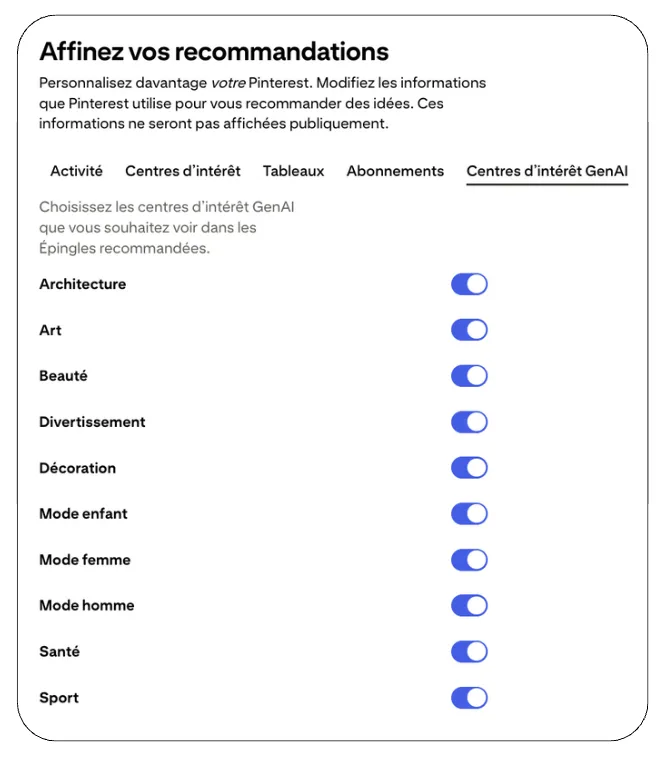 En donnant à ses membres le choix du niveau d’exposition à l’IA, Pinterest se positionne comme l’un des premiers réseaux sociaux à placer la personnalisation et la transparence au cœur de son expérience utilisateur.