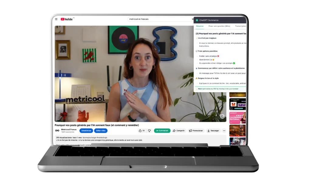 Parce que ces résumés ne servent pas qu’à gagner du temps : vous pouvez les recycler pour vos posts sur les réseaux, vos newsletters ou même vos scripts de Reels ou Shorts. Bref, l’outil parfait pour apprendre et créer… sans regarder la vidéo en entier.