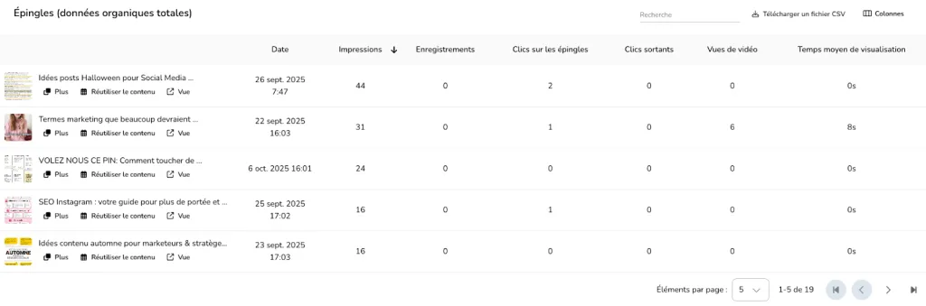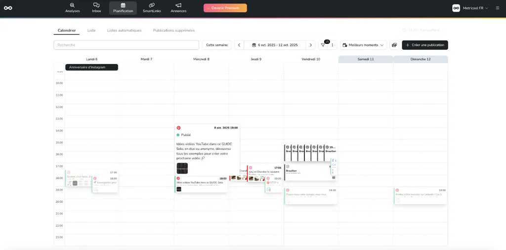 Des plateformes comme Metricool vous permettent de centraliser vos données Pinterest et d’obtenir une vue plus complète sur vos impressions.