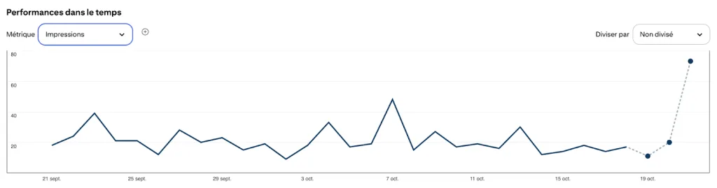 💡Il est important de comprendre que les impressions ne mesurent pas l’engagement. Un utilisateur peut voir votre épingle sans cliquer ni l’enregistrer, et cela sera tout de même comptabilisé. Elles se différencient donc des clics et des enregistrements, qui, eux, mesurent l’intérêt réel pour votre contenu.
