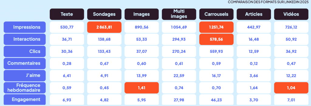 Côté formats, les sondages cartonnent (+158 % d’impressions) et les carrousels continuent d’accélérer, avec 247 % d’interactions en plus.
