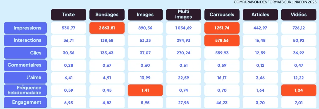 La vidéo poursuit aussi sa progression : elle a généré 35 % d’interactions en plus et s’impose aujourd’hui comme le format le plus efficace pour gagner en visibilité.