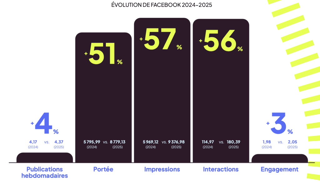 Les chiffres de 2025 parlent d’eux-mêmes : les performances des publications se sont améliorées par rapport à 2024. La portée moyenne a augmenté de 51 %, les impressions de 57 % et les interactions de 56 %. Pas mal pour une plateforme que beaucoup pensaient sur le déclin.