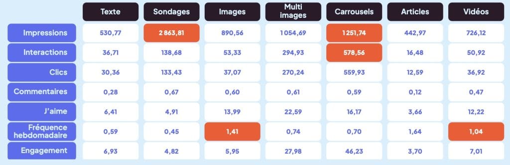 - Les sondages sont le format qui atteint le plus d’impressions.