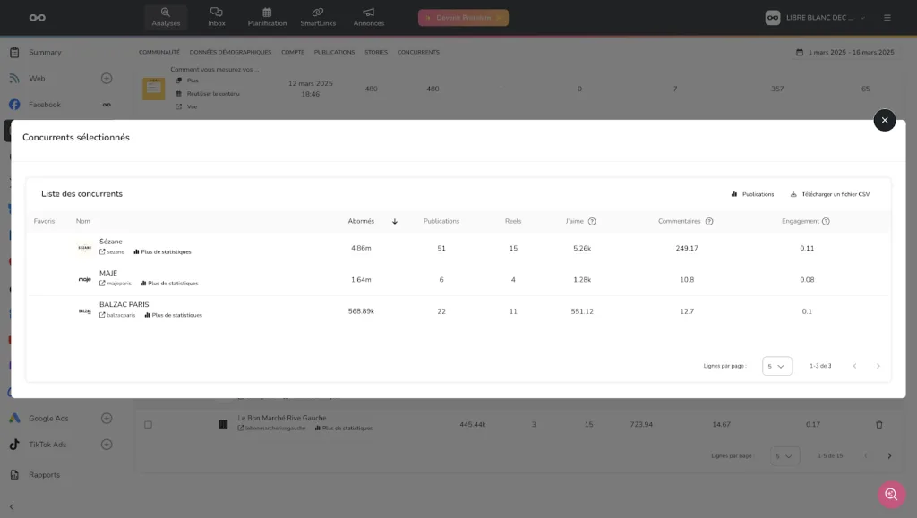 🧭 Analyse de vos concurrents : contrairement à YouTube Analytics, Metricool vous aide à suivre vos concurrents : évolution des abonnés, vidéos les plus performantes, engagement moyen, fréquence de publication… De quoi repérer les tendances et ajuster votre stratégie.