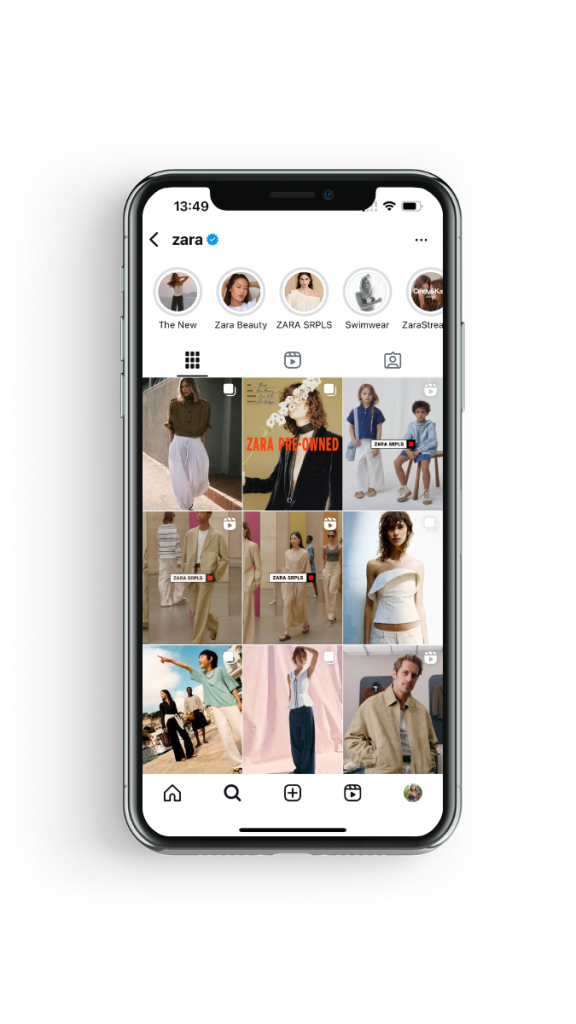 La marque ne se contente pas de poster des looks sur Instagram. Elle crée des campagnes narratives comme ZARA SRPLS et met en avant ses initiatives responsables comme ZARA PRE-OWNED, sa plateforme de seconde main.