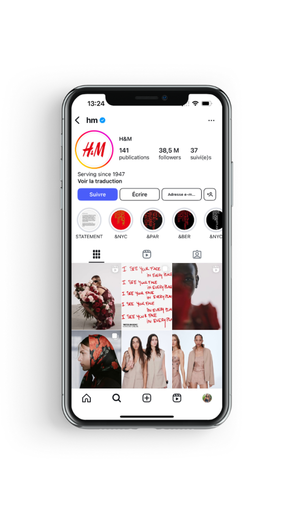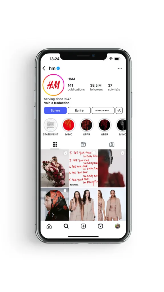 Avec plus de 590K abonnés, H&M exploite la logique des playlists pour raconter des histoires autour de ses collaborations phares (Mugler, Rabanne, H&M Studio), pour offrir une expérience stylée et immersive.