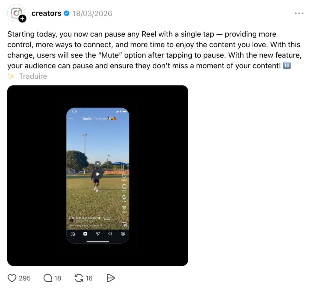 Les Reels ne sont pas uniquement consommés pour se divertir, mais aussi pour apprendre et enregistrer des idées. Ce changement améliore l’expérience pour les contenus où l’utilisateur a besoin de plus de temps pour assimiler ce qu’il voit: