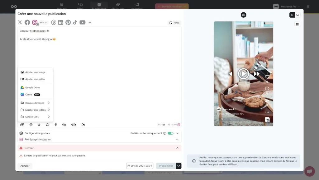 💡 Trouver une musique tendance pour vos Reels Instagram, c’est une chose. Publier au bon moment, c’en est une autre. Avec Metricool, vous pouvez :
