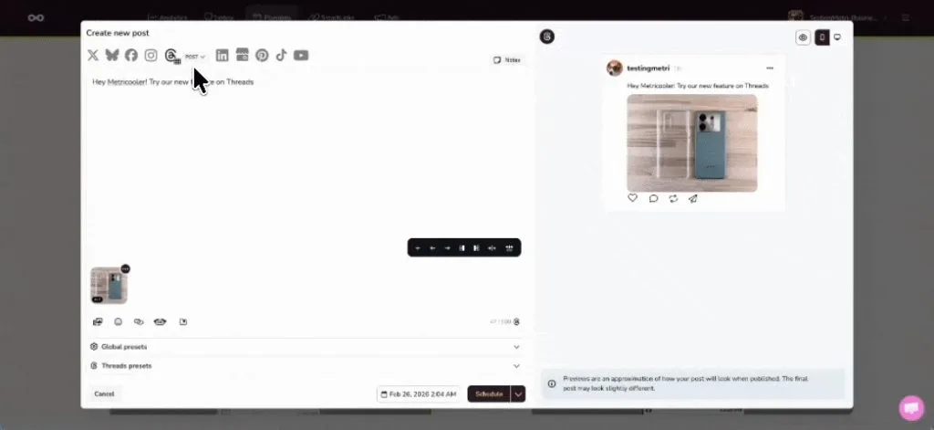 Créez désormais des publications éphémères sur Threads directement depuis le planificateur.