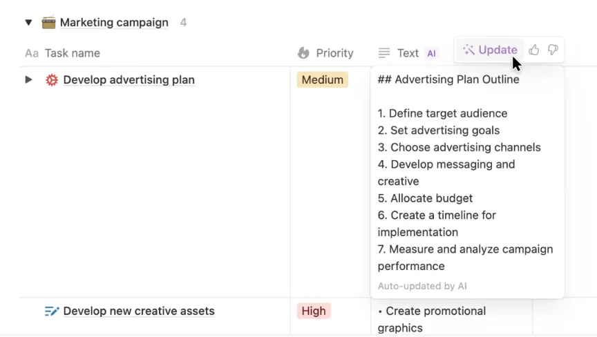 Notion AI agit comme une sorte de secrétaire virtuel. Il résume vos notes de réunion, génère des to-do lists et peut même reformuler vos briefs. Vous pouvez lui demander : “Fais-moi un plan de campagne TikTok en 3 étapes à partir de ces notes”.