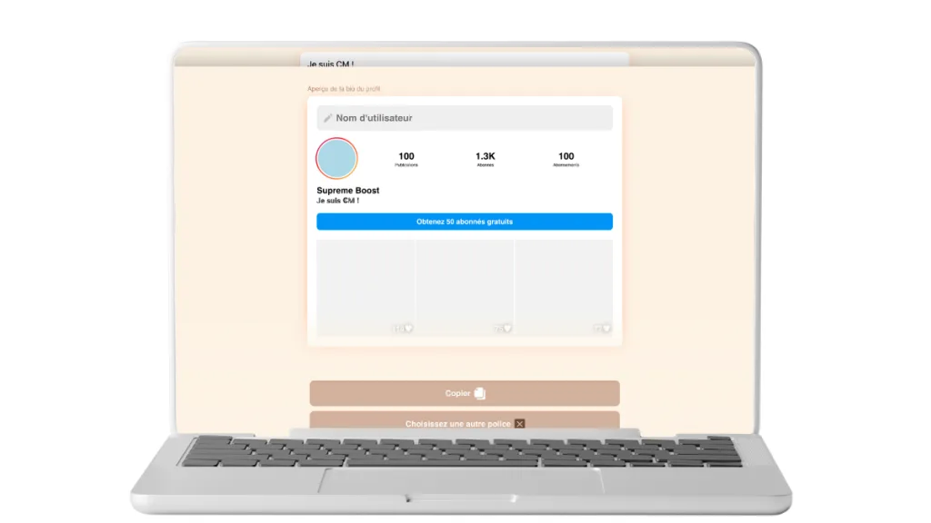 Pensé pour les créateurs de contenu, Supreme Boost propose des polices modernes et tendances. Ce qui fait la différence ? La possibilité de prévisualiser votre texte dans un mockup de profil Instagram.