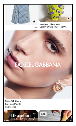- Pins sponsorisés : image, vidéo ou collection