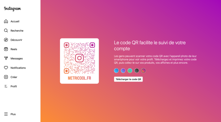 Pour récupérer le code QR lié à votre compte Instagram, vous avez deux options :