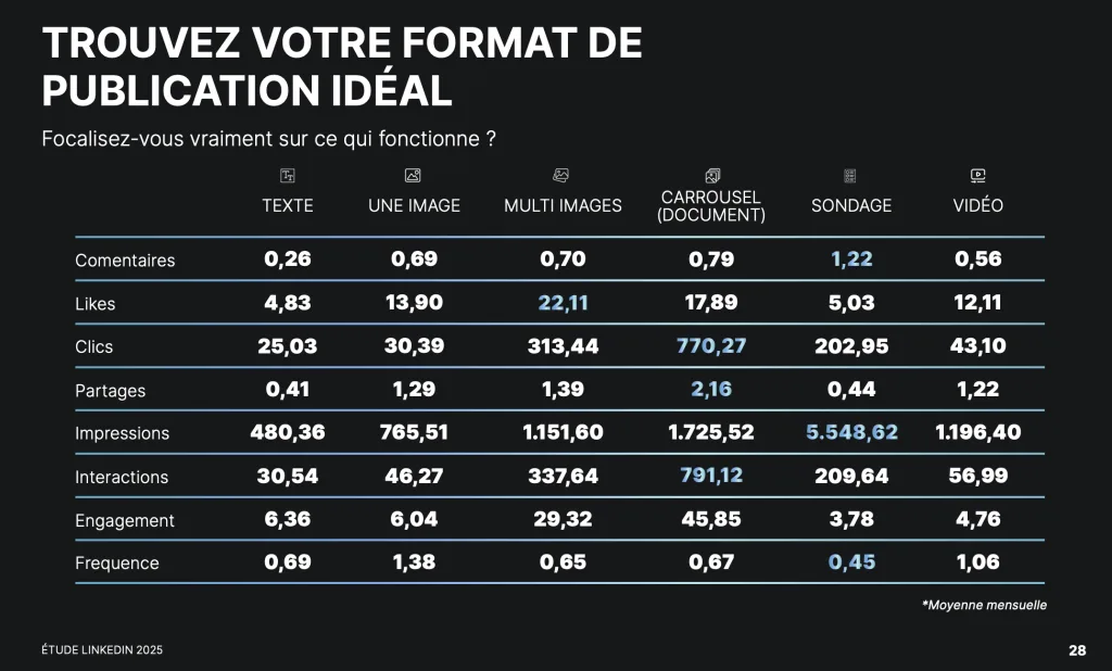 Saviez-vous que les carrousels LinkedIn génèrent en moyenne 45,85 % d’engagement et près de 800 interactions par publication ? Autant dire que c’est LE format à adopter si vous voulez captiver votre audience.