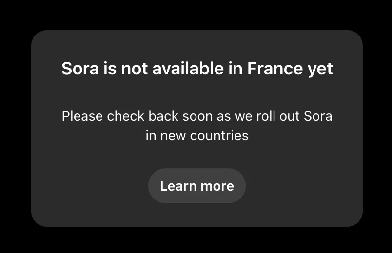 ⚠️ À noter : Pour le moment, il est possible d’utiliser Sora uniquement aux États-Unis et au Canada.