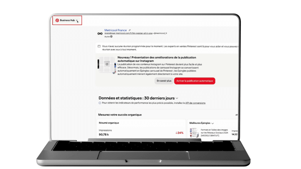 💡 En clair : Pinterest vous donne les chiffres, Metricool leur donne du sens.