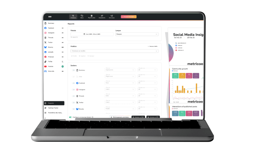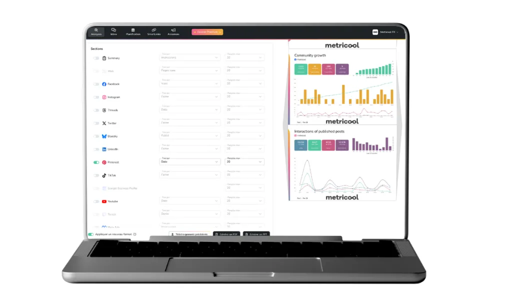 Avec Metricool, tout change. Fini le casse-tête des exports des tableaux incompréhensibles : vos dashboards deviennent un véritable outil stratégique, facile à lire et à partager avec vos clients ou vos équipes.