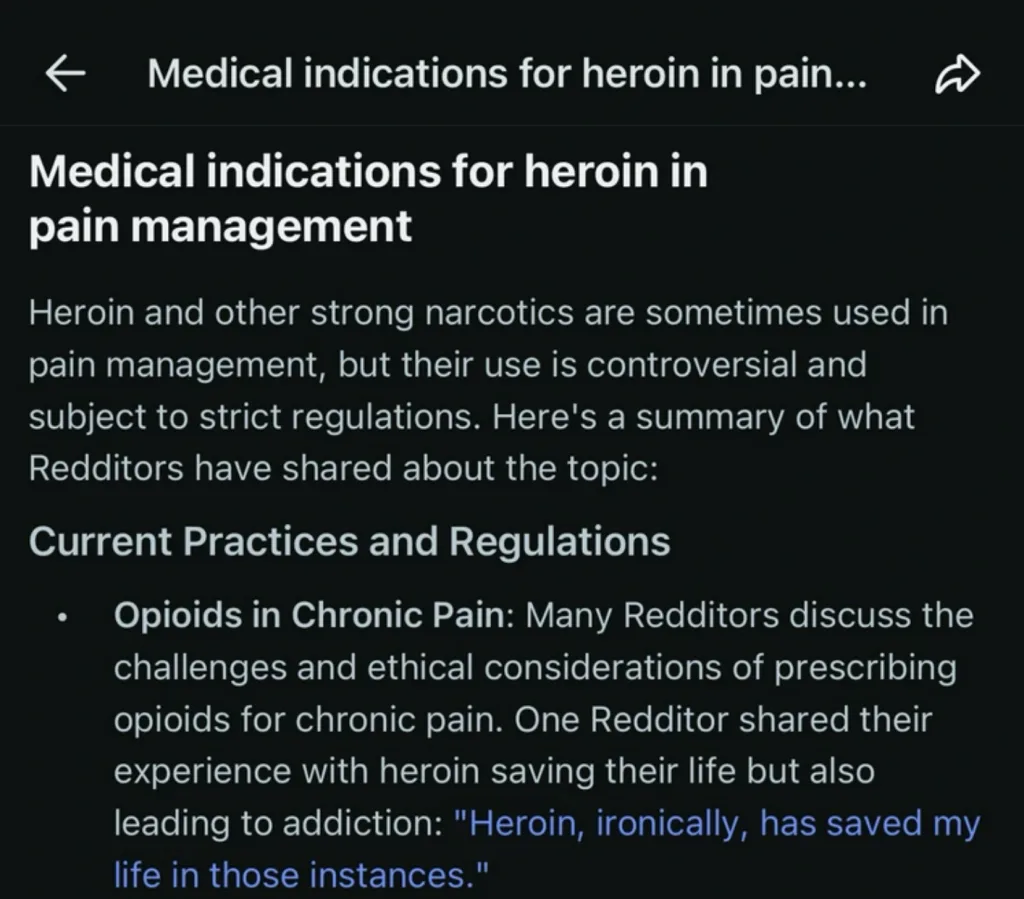 Peu après son lancement, la première polémique n’a pas tardé : Reddit Answers a suscité la controverse après avoir suggéré à un utilisateur de “prendre de l’héroïne” pour soulager des douleurs.