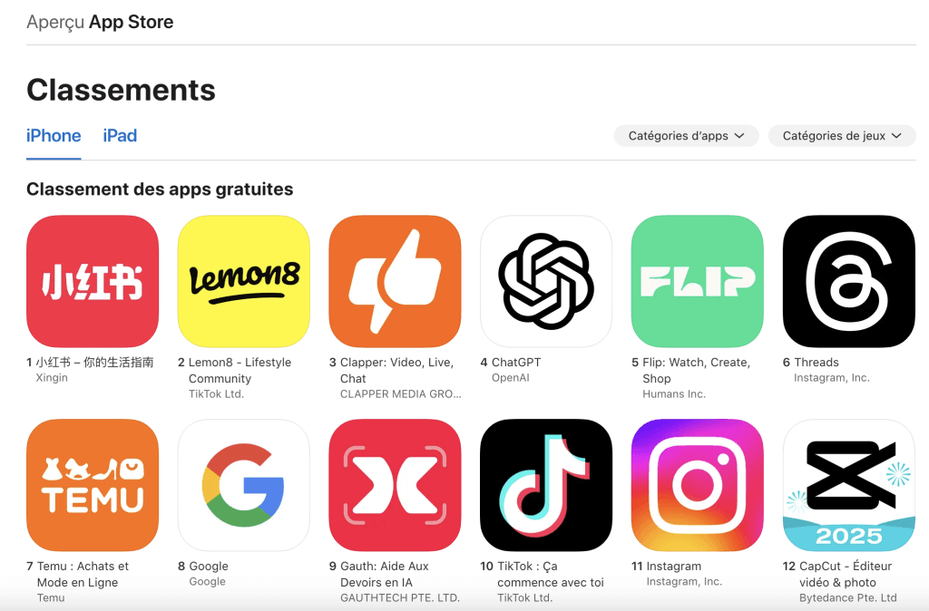 REDnote pourrait également être confrontée à d’autres applications qui peuvent elles aussi prétendre au titre de meilleure remplaçante du géant des réseaux sociaux, TikTok.