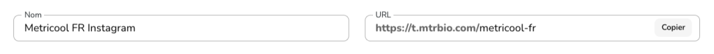 ⚠️ Attention : chaque lien doit avoir une URL unique. Si le nom existe déjà, Metricool vous le signalera pour éviter toute confusion.